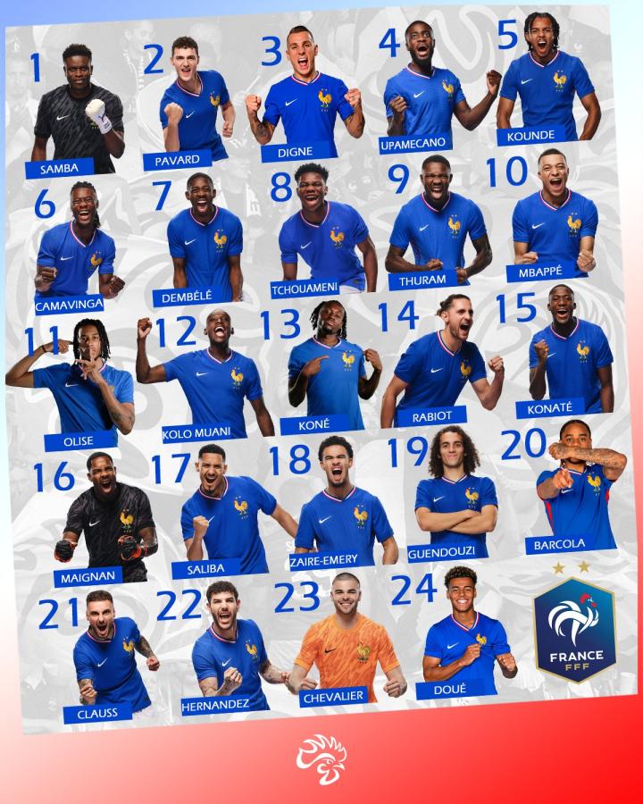 19岁的杜埃首次入选成年国家队,他本赛季在巴黎表现出色,贡献了7个进球和11次助攻。对于并非中锋的他来说,穿上9号球衣有些不同寻常,但球迷们对他在国家队的表现充满期待。
